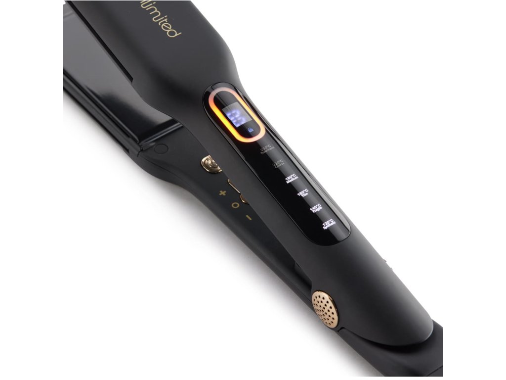 - A Professional Unlimited turmalin kerámia lemezei 38 mm szélesek és negatív ionokat bocsátanak ki, amelyek csökkentik a göndörödést és javítják a haj puhaságát